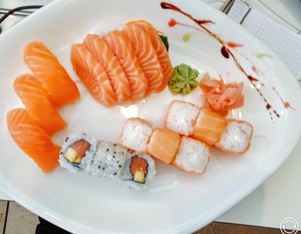 | 17 pièces - 3pcs sushi saumon, 3pcs california roll saumon mangue, 5pcs sashimi saumon, 6pcs saumon roll cheese naturel | |